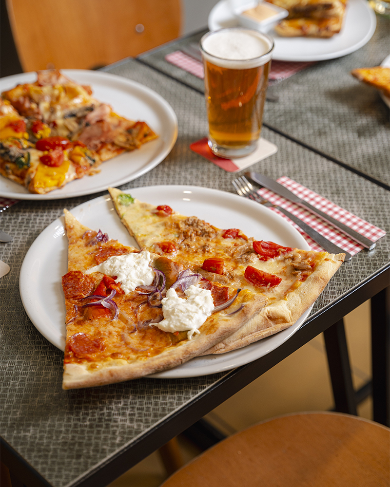 Impasto fresco e lunga lievitazione sono il nostro mantra per garantirvi una pizza che è allo stesso tempo leggera e ricca di sapore. La nostra offerta si estende dal take away per i vostri pranzi veloci a soluzioni su misura per ogni tipo di esigenza, comprese le vostre serate speciali.